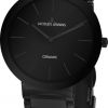 Кварцевые часы серии High Tech Ceramic выполнены в модном стиле «минимализм». Их лаконичный корпус диаметром 34 мм сделан из нержавеющей гипоаллергенной стали c PVD-покрытием черного цвета. На матовом черном циферблате расположены хорошо читаемые риски и стрелки часов и минут. В модели установлено ударопрочное минеральное стекло Crystex. Повышенная водостойкость равна 10 атмосфер.